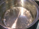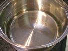 なべに 水(2ℓくらい)を 入れて、中火に かけます。