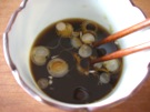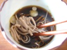 そばを つけて 食べます。