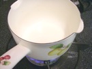 小さな鍋に 酒と みりんを 入れて、沸かします。