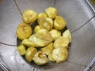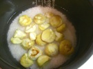 沸いたら、くりを 入れて、3分 茹でます。茹でたら、そのまま 湯に 入れておきます。
