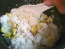 炊飯器に 米と Aを 入れます。2の 目盛りまで 水を 入れます。