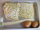 材料の うどん、長ねぎ、卵です。