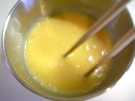 卵を 割って、よく 混ぜます。