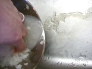 大根から 出た 水を 捨てます。大根おろしが できました。