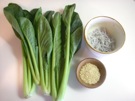 材料の 小松菜、しらす干し、ごまです。