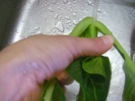小松菜を 洗います。 下の方を よく 洗います。