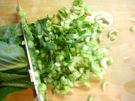 根を 切って、3mmに 細かく 切ります。