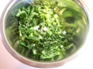 ボウルに 小松菜と 塩(小さじ1)を 入れます。
