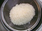 米を 洗って、ざるに 入れます。