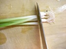 小ねぎの 根を 切ります。