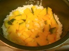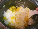 炊飯器に 米と Aを 入れて、「2」の 目盛りまで 水を 入れます。