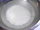 (水に つけて、米を やわらかくします)