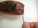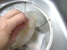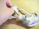 胴の 中を 水で よく 洗います。