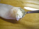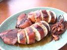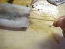 もち米を いかの 胴の 中に 入れます。
