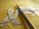 足を 食べやすい 大きさに 切ります。