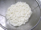 もち米を ざるに 入れます。