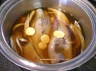 鍋に Aと 14の いか、いかの足、生姜を 入れます。中火に かけます。