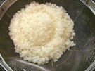 米を 洗って、ざるに 入れます。