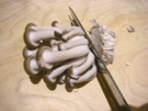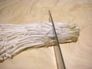 えのきだけの 石突きを 切ります。