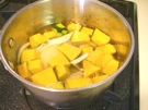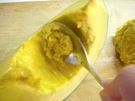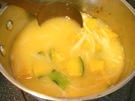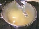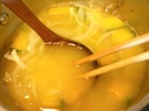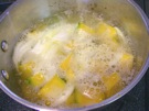 かぼちゃが やわらかくなったら、みそを 入れます。
