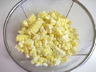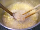 沸いたら、とうもろこしを 入れます。4〜5分 煮ます。