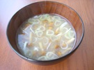 鍋に 水と 顆粒だしを 入れて、中火に かけます。