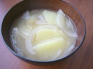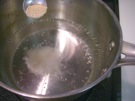 鍋に 水と 顆粒だしを 入れて、中火に かけます。