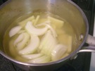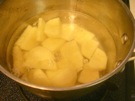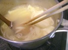 沸いたら じゃがいもを 入れます。3〜4分 煮ます。