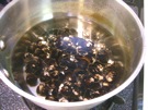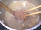しじみの 殻が 開いたら、みそを 入れます。