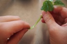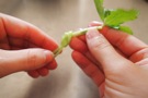 茎を 半分に 折ります。