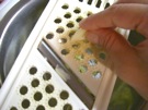 生姜の 皮をむいて、同じ ボウルに すりおろします。