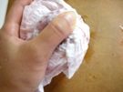 キッチンペーパーで 水を よく 拭きます。