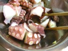 ゆでだこを 水で 洗います。
