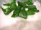 ピーマンを たてに 半分に 切ります。