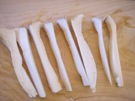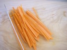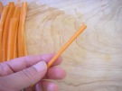 にんじんの 皮を むいて、10㎝に 細く 切ります。
