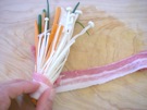 きのこと 野菜を まとめて、豚肉を 巻きます。(下から 強く 巻きます)