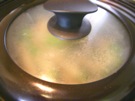 肉が 焼けたら、ふたを します。弱火にして、2分 焼きます。