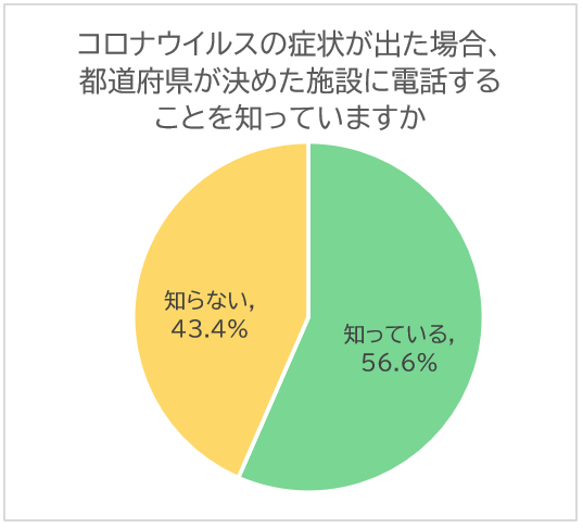 2.コロナウイルスの症状が出た場合、すぐ病院に行ってはいけません。都道府県が決めた施設に電話します。そのことを知っていましたか。