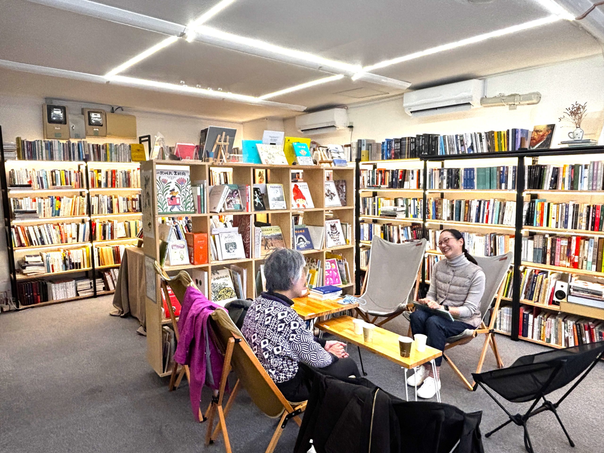 中国の本が新刊を含めて、ぎっしりと並びます。ここは本屋さんではなく、中国語の本が読める、自由に勉強するスペースもある会員制の図書室です。本に関するイベントも行なわれています。「遇見」とは、日本語で偶然の出会いという意味に近いそうです。本や絵本についての話を聞きます。 -